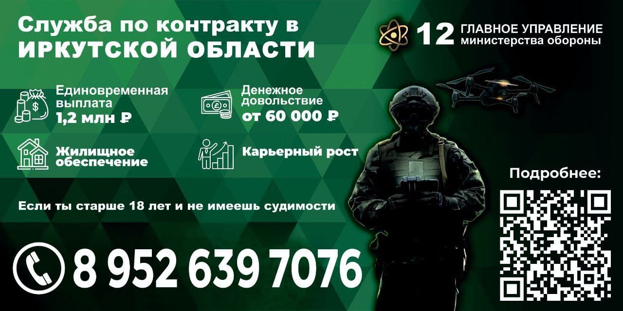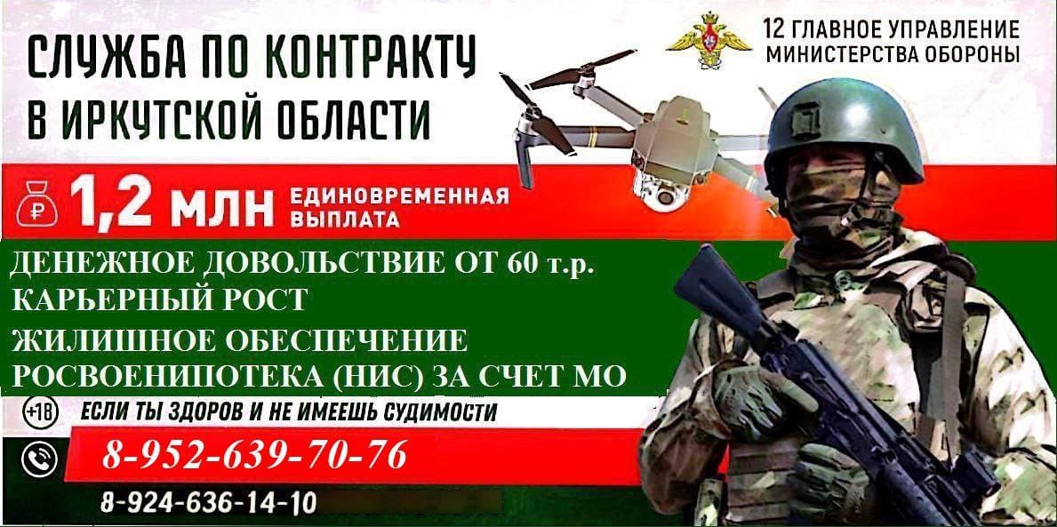 Напоминаем, что желающие заключить контракт на военную службу могут обратиться в военный комиссариат по адресу: г. Тайшет, ул. Горького, 13 с 08:00 до 17:00 в будние дни либо в администрацию вашего поселения по месту жительства