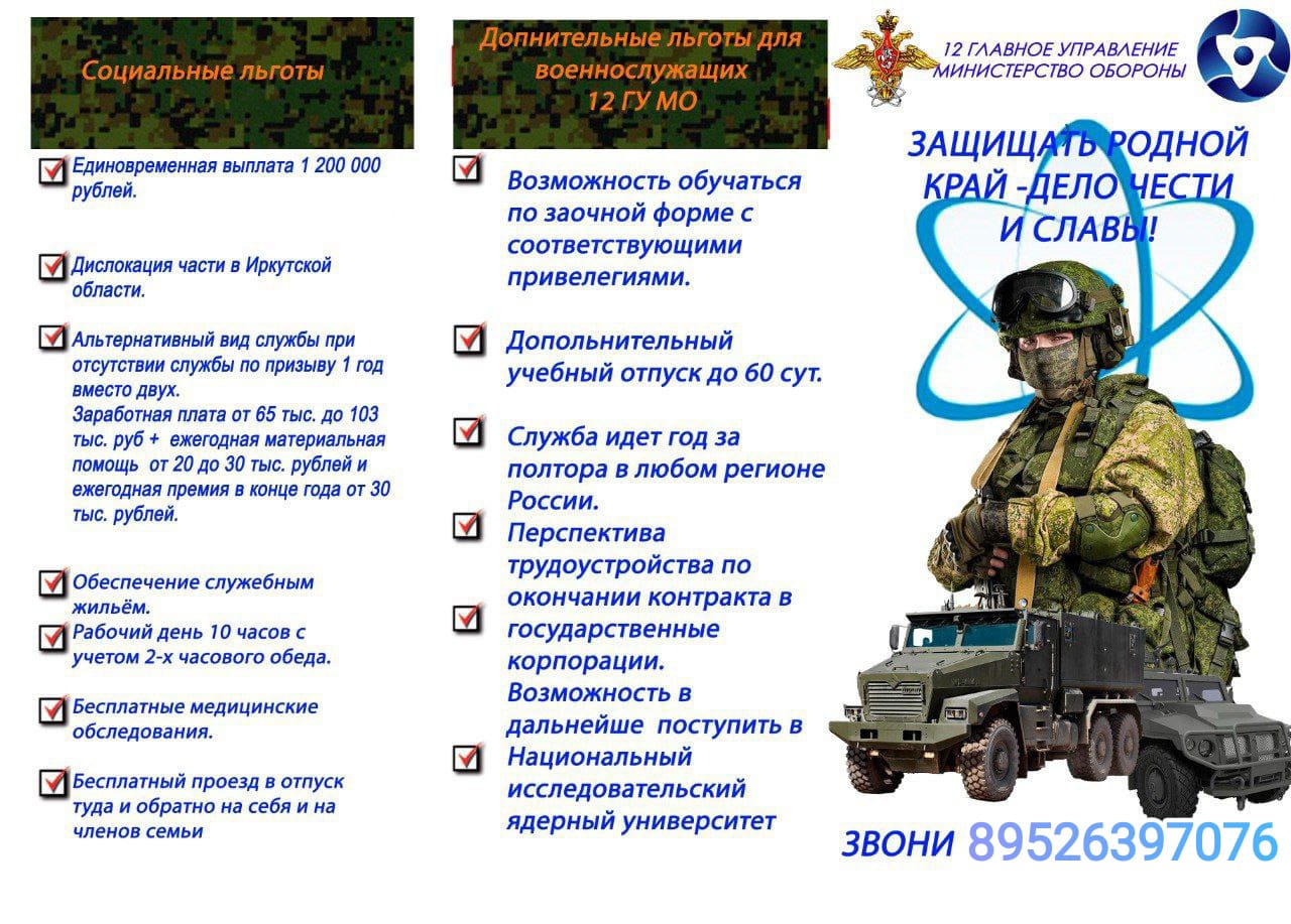 - граждане, достигшие 18-летнего возраста, имеют право поступить на военную службу по контракту в подразделения 12 ГУ МО, без прохождения военной службы по призыву;