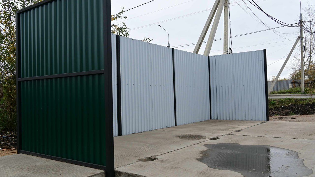 ✅На ул. Рабочей, 25 выполнили полный комплекс работ: демонтировали старое ограждения, уложили подушку из ПГС и основание из бетонных плит, установили и покрасили новый каркас и обшили его профлистом.