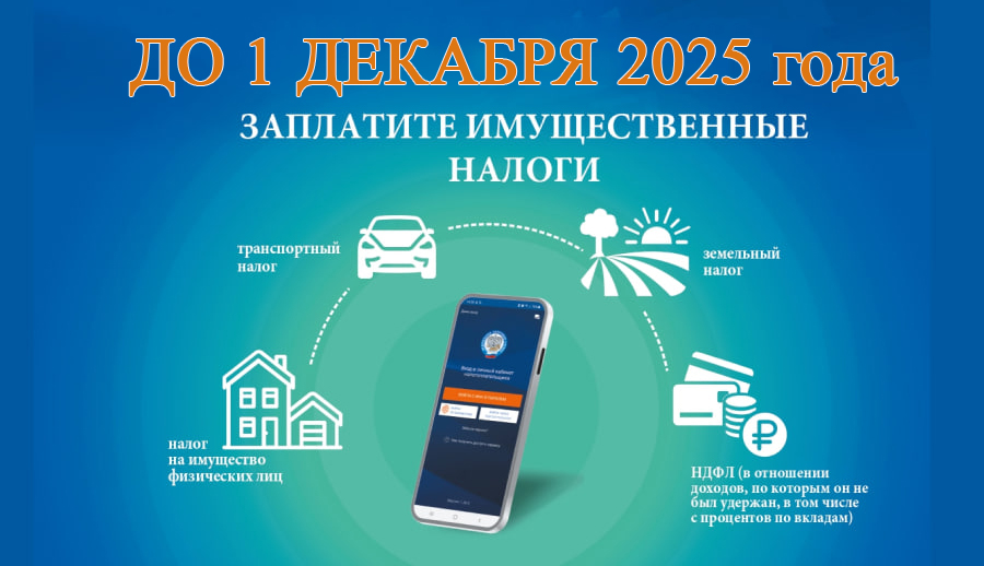 Напоминаем, что до 1 декабря 2025 года, необходимо оплатить налоги физических лиц: